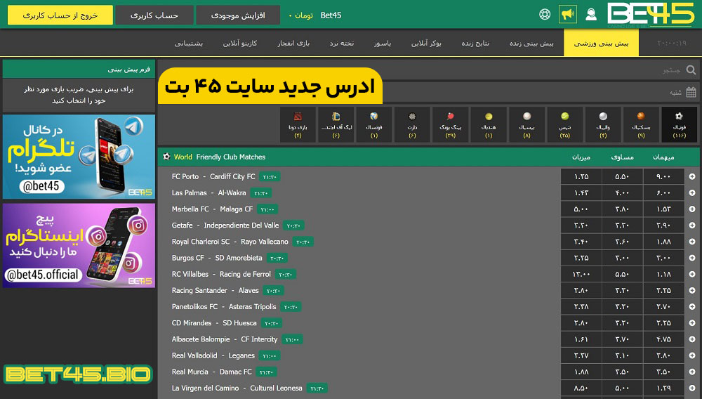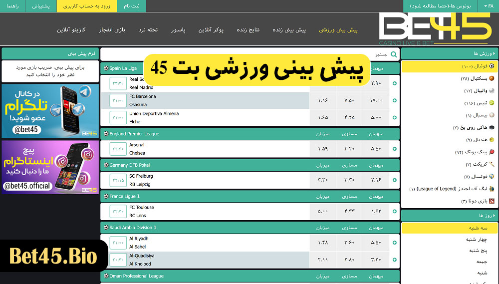 معمولا قبل از رفتن به سایت و شروع شرط بندی، کاربران حرفه ای اینستاگرام Bet 45 را چک می کنند تا اطلاعات کامل را به دست آورند و سپس شرط بندی کنند.