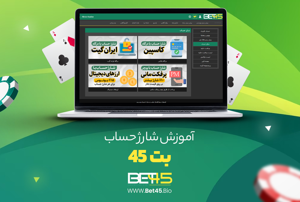 شارز حساب کاربری در سایت Bet45 بت 45 این گونه می باشد که شما باید با توجه به روش های موجود مبلغ مورد نظر خود را پرداخت کنید و به شروع فعالیت در یک سایت شرط بندی معتبر بپردازید.